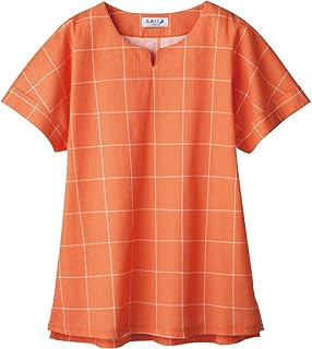 セルヴァン 高島ちぢみ ドロップショルダーチュニック オレンジチェック LL