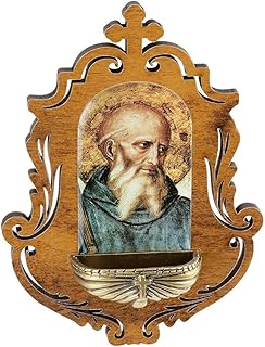 Catholica Shop 聖ベネディクト 聖水 聖なる木製ウォールフォント | 長さ15cm x 幅4.3インチ