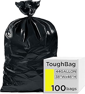 ToughBag (タフバッグ) 55ガロン ゴミ袋 3ミル 建築請負業者用 大型 55~60ガロンのゴミ箱用ライナー 黒 38×58インチ (50枚) - 屋外/建設/芝生/工業/芝生/葉 - 米国製