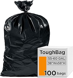 ToughBag 55 – 60 Gallon Trash Bags , 38 W x 58h、1.2ミリ、ブラック、100 /ケース
