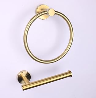 Winmien バスルームハードウェア SUS 304 ステンレススチール 2ピースセット 壁掛け金具 ラウンドタオルリングとロールペーパータオルホルダー (つや消しゴールド)