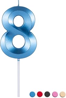 バースデーキャンドル 拡張大きな数字のキャンドル マルチカラー 3Dデザイン ケーキトッパー デコレーション あらゆるお祝いに (8本のキャンドルブルー)