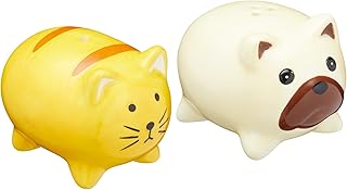 KitchenCraftセラミックドッグ&キャットシェイプノベルティソルト&ペッパーシェーカー - イエロー/ベージュ(2ピースセット)