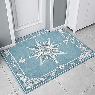 カーペット ラグマット 玄関マット 長方形 ゴブラン織り ペルシャ 北欧 花模様 室内用 屋内 インテリア ドアマット 洗える 滑り止め 絨毯 床暖房 泥落とし 吸水 抗菌防臭 ふわふわ おしゃれ ライトブルー 90×140cm