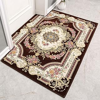 カーペット ラグマット 玄関マット 長方形 ゴブラン織り ペルシャ 北欧 花模様 室内用 屋内 インテリア ドアマット 洗える 滑り止め 絨毯 床暖房 泥落とし 吸水 抗菌防臭 ふわふわ おしゃれ ブラウン 50×80cm