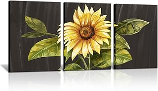 3ピース ひまわり キャンバス ウォールアート 黄色 花 花 花 絵画 プリント 額入り スパ バスルーム 寝室 キッチン ダイニングルーム ホームデコレーション 簡単吊り下げ 12インチ x 16インチ x 3ピース