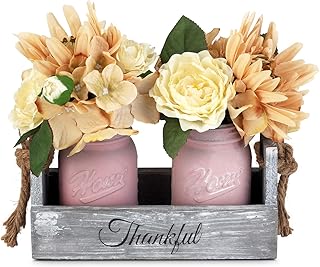 GBtroo メイソンジャー テーブルセンターピース 花付き 素朴な農家 キッチン テーブル装飾 センターピース ホーム コーヒー テーブル ダイニングルーム リビングルーム キッチン用 (ピンク) Mサイズ