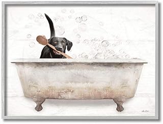 Stupell Industries ハッピーラブラドール 素朴なバブルバスデザイン ウォールアート 16 x 20インチ オフホワイト
