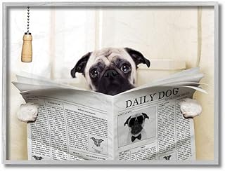Stupell Industries パグリーディング 新聞 浴室 グレーフレーム ウォールアート 16 x 20インチ 家の中のアーティストによるデザイン