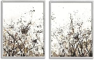 Stupell Industries 水彩画 草原 雑草 ブラウンタン画 ウォールアート 2枚 各16 x 20インチ ベージュ