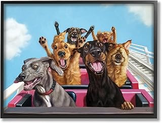 Stupell Industries 犬 乗馬ローラーコースター 面白い遊園地 Lucia Heffernanによるデザイン ブラックフレーム ウォールアート 16 x 20 ブルー