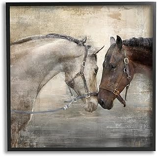 Stupell Industries 馬のカップル テクスチャード農場動物写真、メインラインスタジオによるデザイン ブラックフレーム ウォールアート 17 x 30 タン