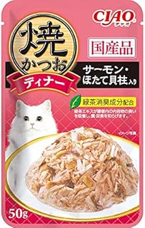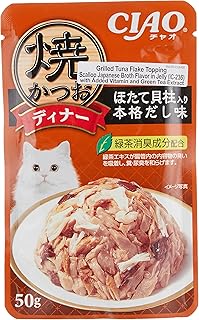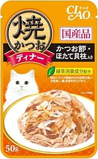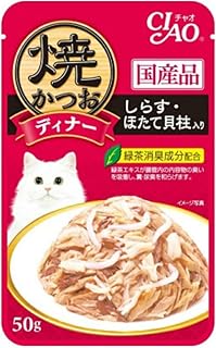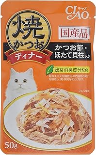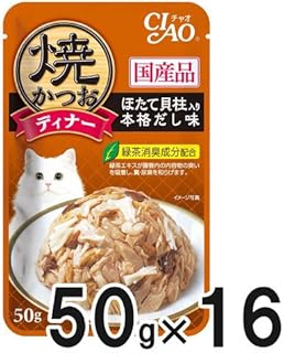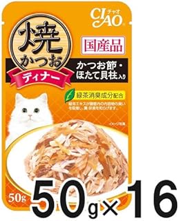 チャオ (CIAO) キャットフード 焼かつお ディナー かつお節・ほたて貝柱入り 50グラム (x 16) (まとめ買い)