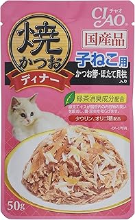 チャオ (CIAO) キャットフード 焼かつお ディナー 子ねこ用 かつお節・ほたて貝柱入り 50グラム (x 16) (まとめ買い)