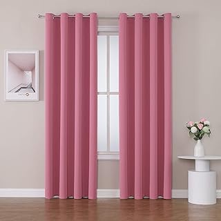 ChrisDowa ハトメ付き遮光カーテン 寝室とリビングルーム用 2パネルセット 断熱遮光カーテン ピンク 52 x 84インチ