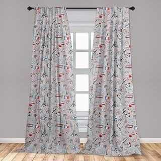 Ambesonne パリカーテン フランスをテーマにしたイメージ フランス国旗 犬 エッフェル塔 クロワッサン ヴィンテージ 愛の都市 窓飾り 2パネルセット リビングルーム ベッドルーム 装飾 56インチ x 84インチ グレーブルー