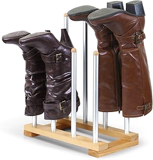 (インノカ) INNOKA 4足収納 ブーツラック 自立式 木材・アルミ製 ストレージオーガナイザー 乗馬ブーツ/レインブーツ/靴用 組み立て簡単 省スペース ブーツの型崩れ防止 ブラウン 2329258
