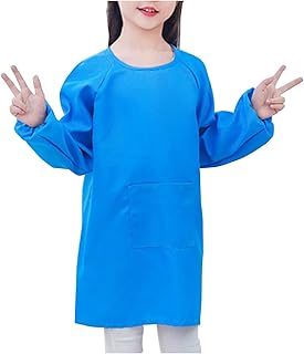 FuliLie スモック 子供 キッズ 無地 シンプル 女の子 男の子 幼稚園 保育園 お絵描き (青, M(100-120cm))