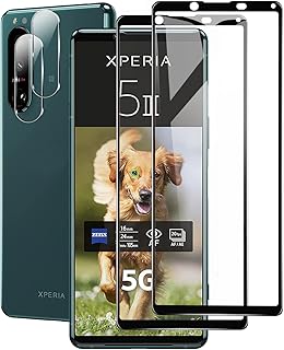 AUNEOS Xperia 5 III 用 ガラスフィルム 液晶保護+カメラ保護 Xperia5 iii フィルム SO-53B / SOG05 対応 3D全面保護 日本旭硝子素材 強化ガラス 硬度9H 指紋防止 耐衝撃 高透過率 エクスペリア5 iii 液晶保護フィルム2枚+カメラ保護フィルム2枚